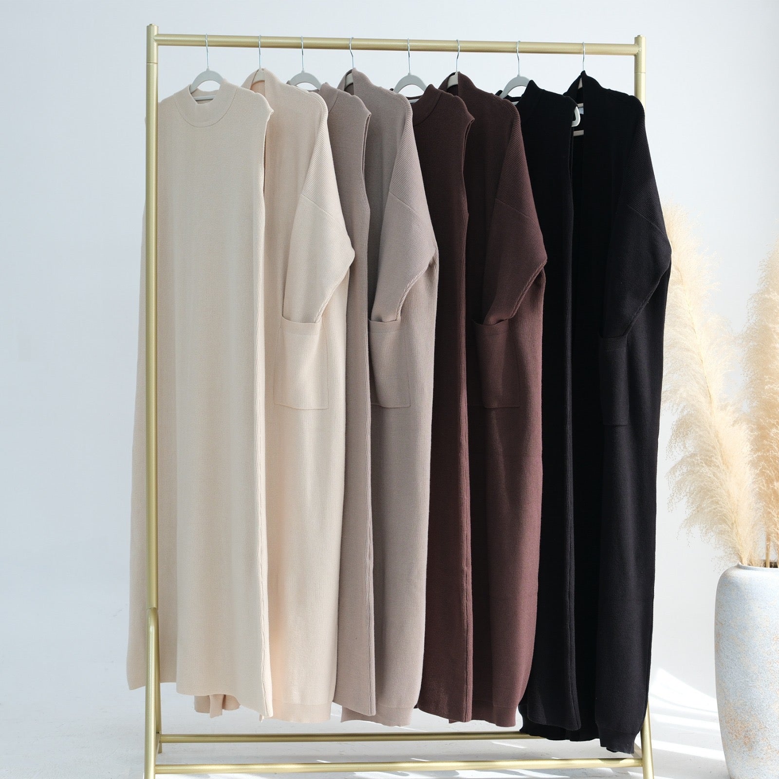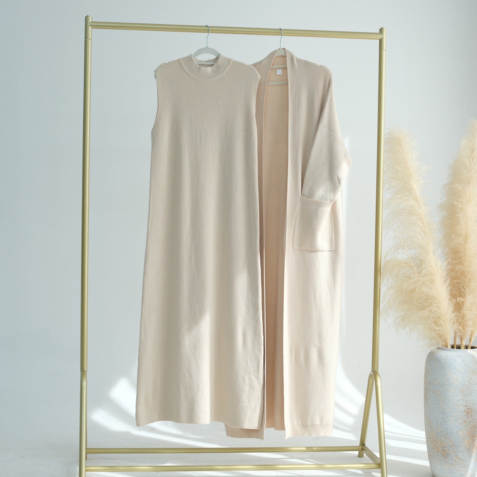 AURORA Knit Set är den perfekta kombinationen av komfort och sofistikation. Setet består av en ärmlös midiklänning och en matchande lång kofta i mjuk stickad kvalitet – enkelt att bära tillsammans för en komplett look eller separat för oändliga stylingmöjligheter.